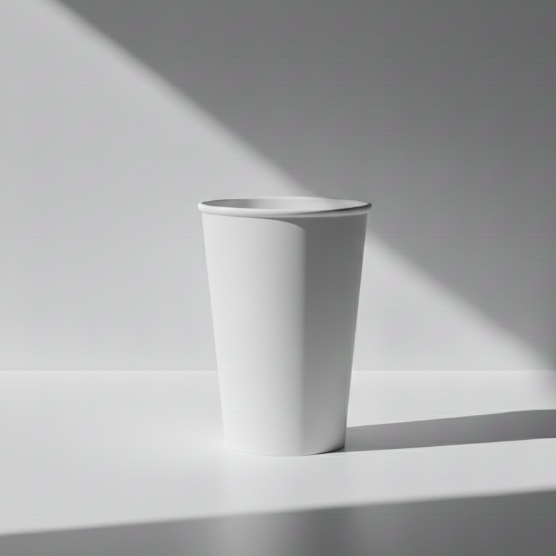 Vaso de cartón blanco resistente, ideal para café, té y bebidas calientes. Diseño sencillo y elegante, perfecto para cafeterías, eventos y uso para llevar.
